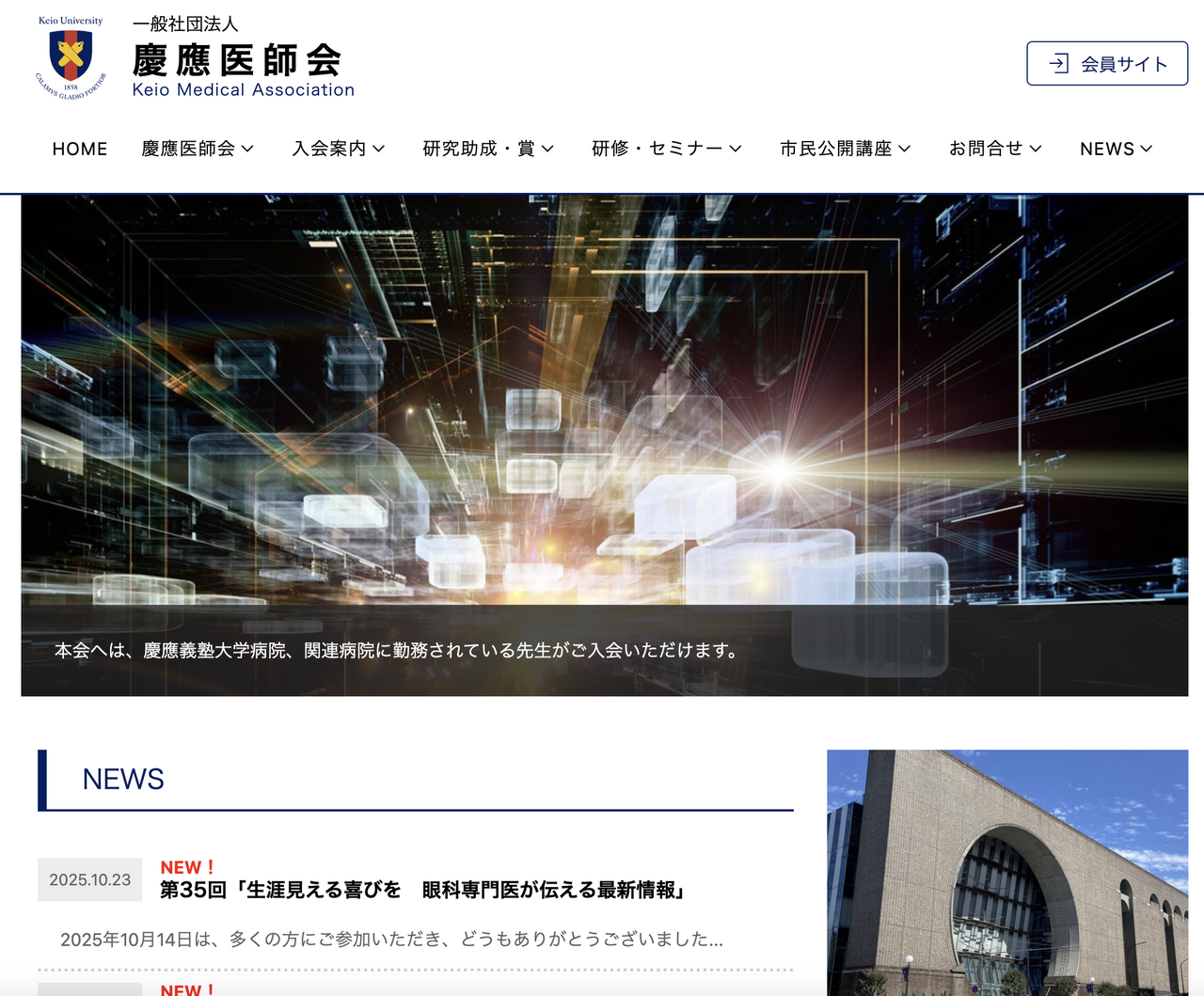 一般社団法人 慶應医師会様は、弊社構築の医療系学会様から直接のご紹介をいただきました。ご提案のお話を通じて、弊社をご信頼をいただきました。そのご期待を上回るコストパフォーマンスの良さと、徹底的に親身に立った設計、すっきり品のあるデザインのWEBサイト構築をさせていただきました。